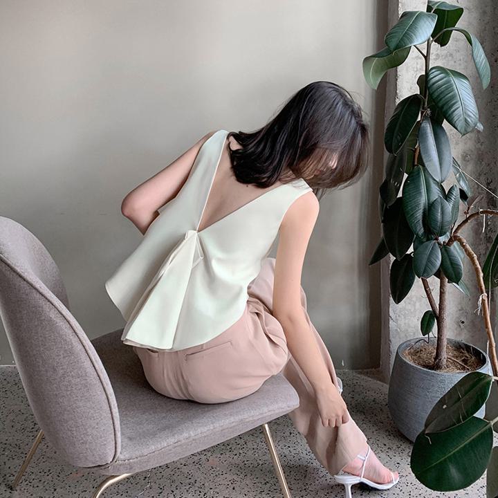 トップス レディース Vネック ノースリーブフリルトップス フリル ノースリーブ オフィスコーデ お仕事コーデ オリジナルデザイン