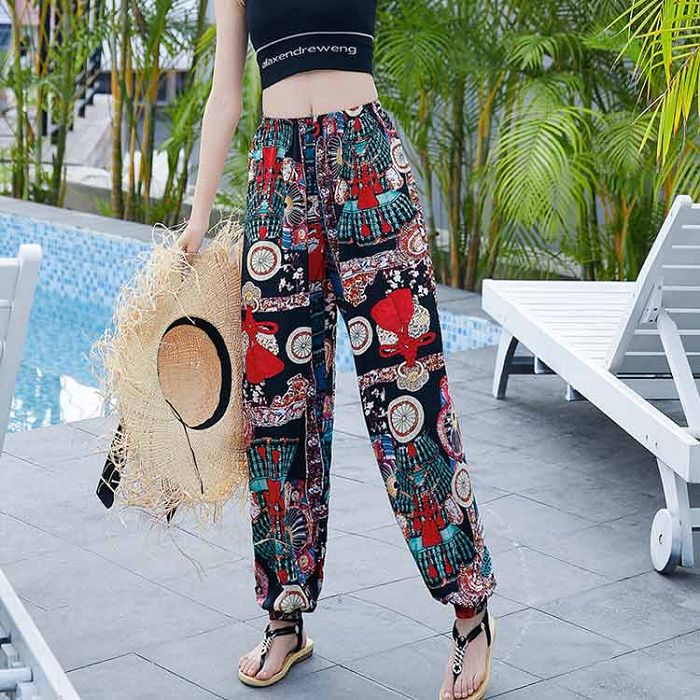 ロングパンツ 花柄 夏 ゾウ柄 総柄 ジョガーパンツ スポーツ ルームパンツ サルエルパンツ レディース 薄手 可愛い 部屋着 女性 婦人 タイパンツ 長ズボン おしゃれ ビーチパンツ ウエストゴム 裾ゴム ボトムス 大きいサイズ 涼しい ヨガ ダンス