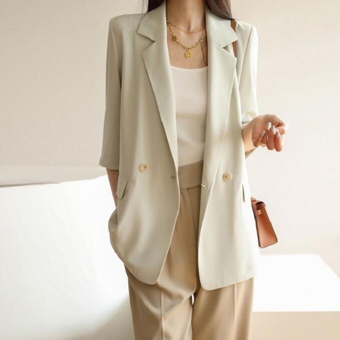 レディース テーラードジャケット スーツ 女性 ジャケット ビジネスジャケット リクルートスーツ 大きいサイズ 韓国風 スーツジャケット レディースジャケット 7分袖 夏用 サマージャケット OL ゆったり 通勤 就活 面接 フォーマルジャケット エレガント