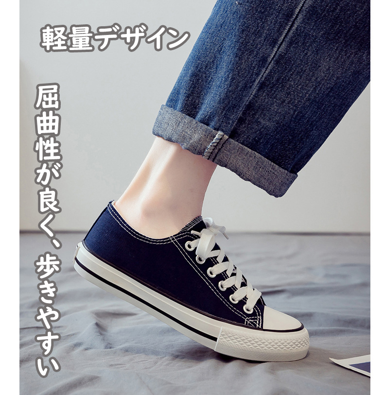 レディース ローカット スニーカー 軽量 フラットシューズ カジュアル キャンバス シンプル 痛くない 履きやすい 疲れない 無地 軽い 通勤 通学 靴 ブラック ホワイト 22.5cm-25cm
