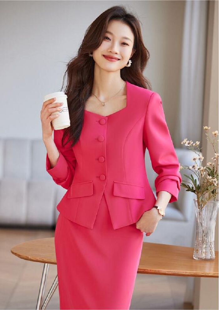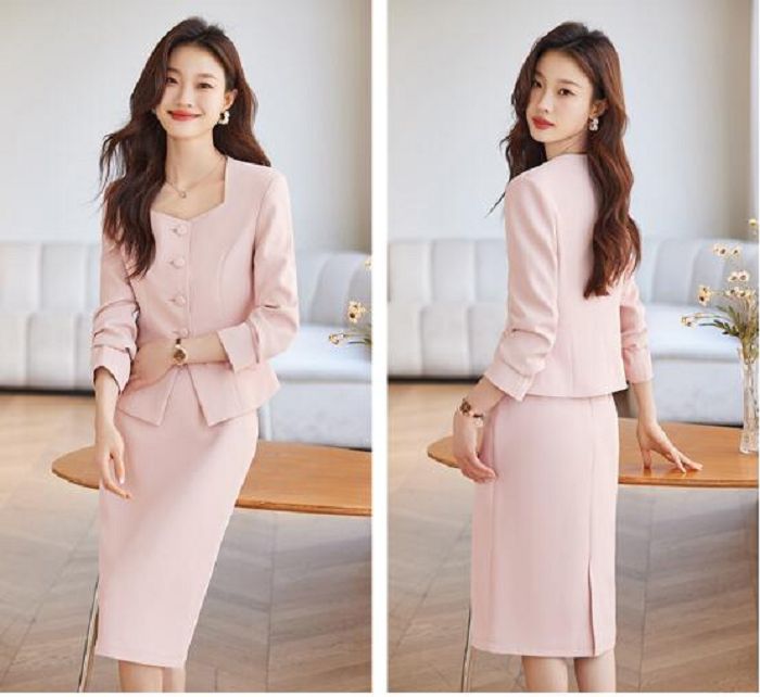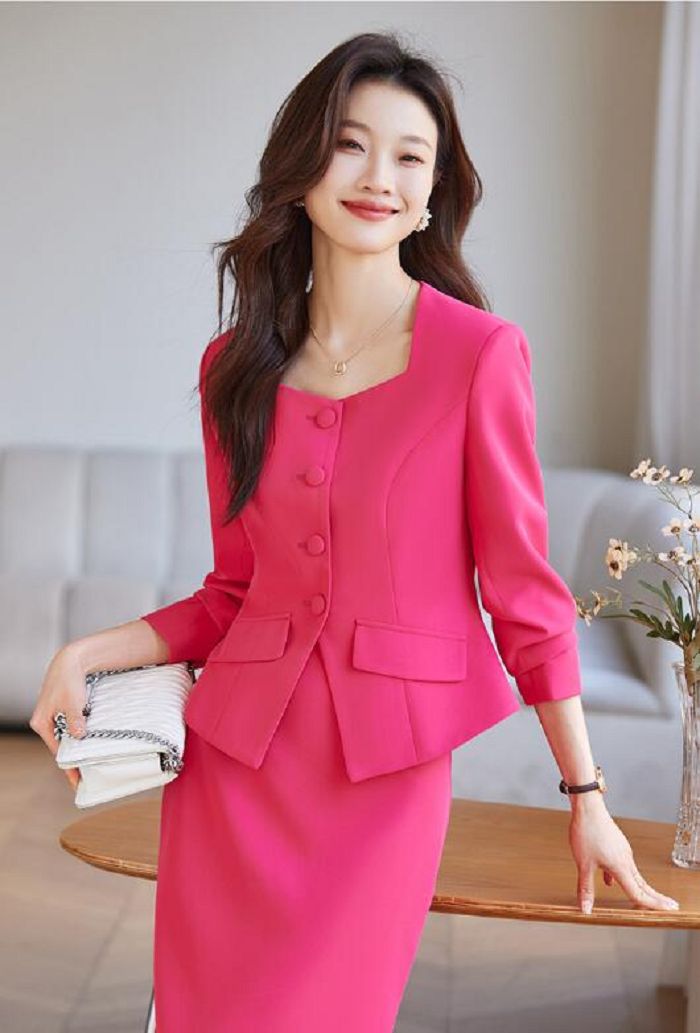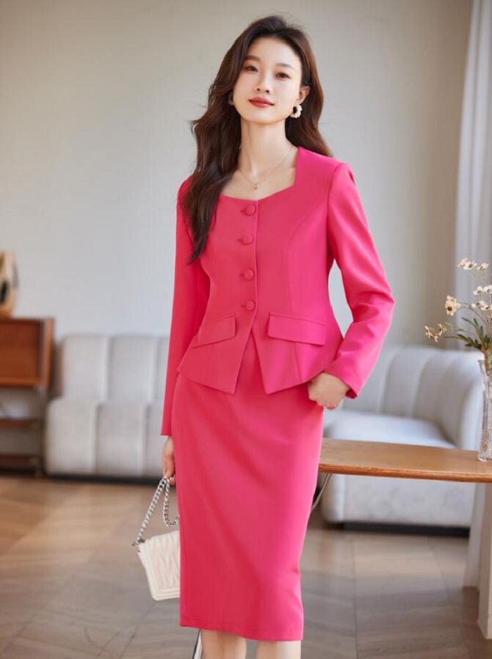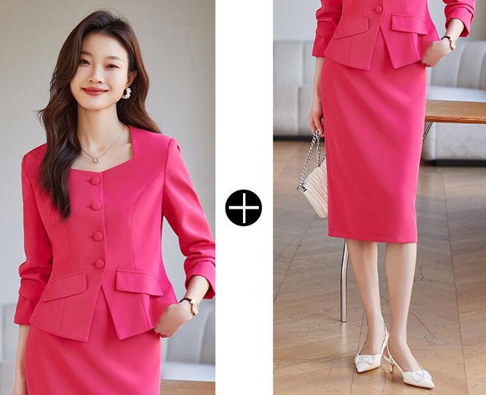 2点セット 結婚式レディースドレス 新作 カジュアル 通勤 OL 送料無料 ビジネススーツ 「ジャケット+ミモレ丈スカート」 スカートスーツ エレガント 宴会 フォーマル 制服 着痩せ 20代30代40代 発表会 二次会 ママ カジュアル ブラック ローズ ピンクS/M/L/XL/2XL/3XL