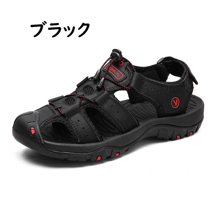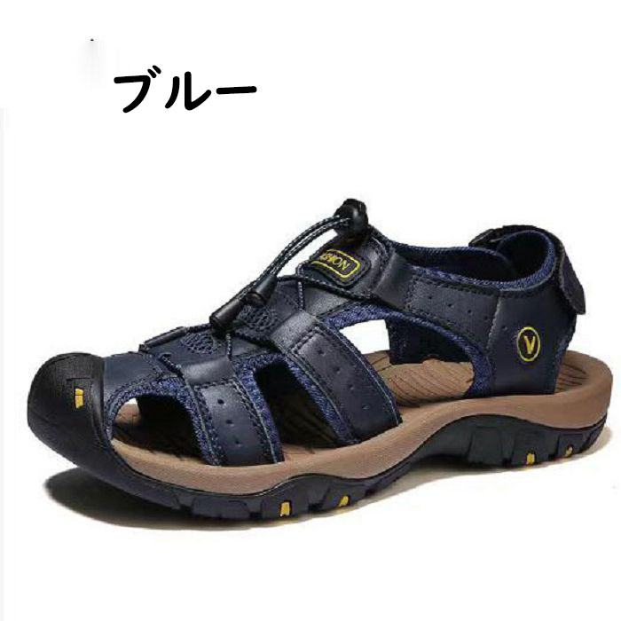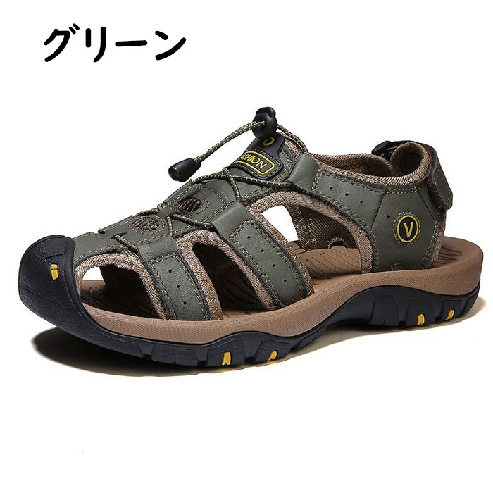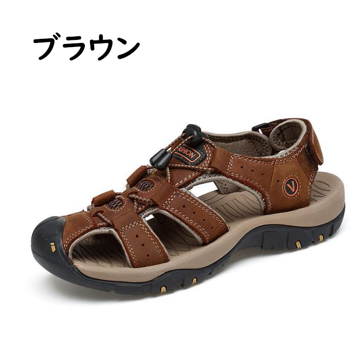 スポーツサンダル 本革 厚底 メンズサンダル メンズ アウトドアサンダル つま先保護 マジックテープ コンフォート 防臭 吸汗 速乾 通気 水陸両用