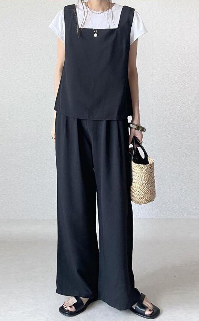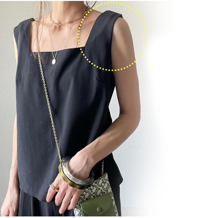 スクエアネックなので首周りがスッキリ見えます。涼しげなノースリーブのデザインで通気性が良くて夏に涼しい。