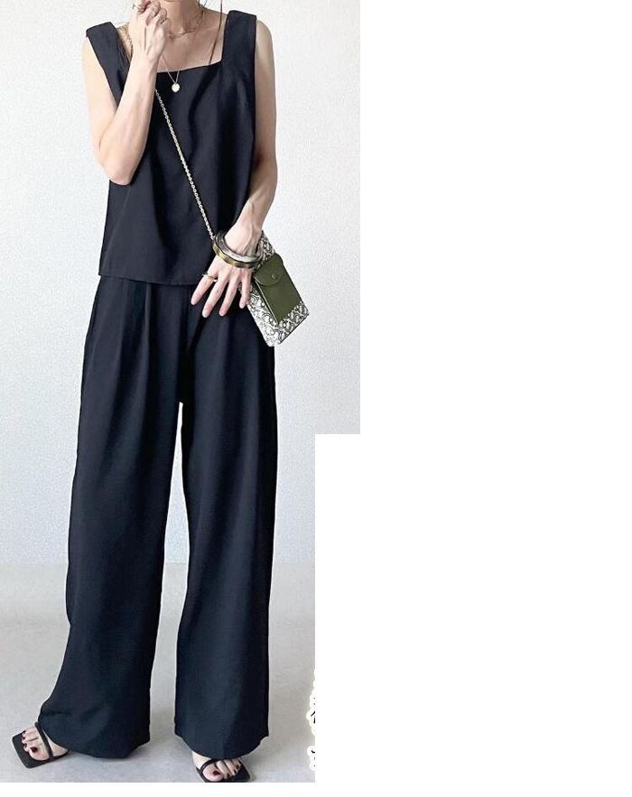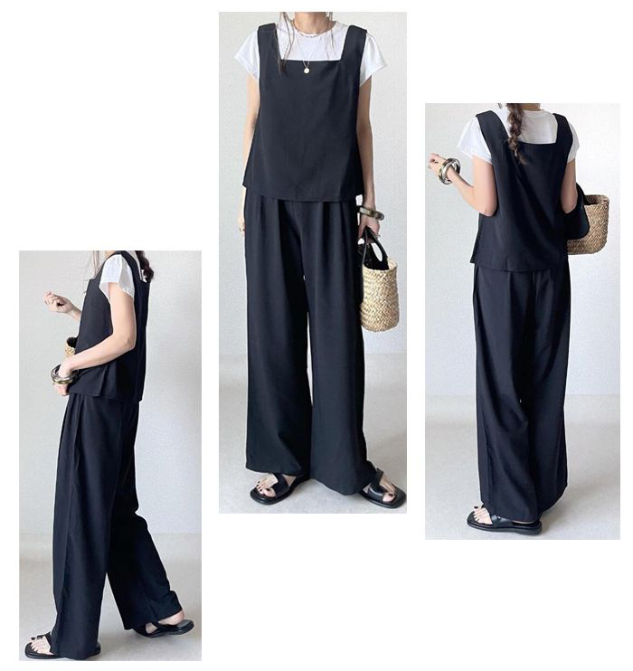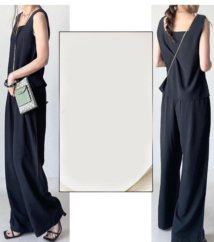 レディース パンツドレス セットアップ 綿麻混紡 パンツスーツ ノースリーブ スクエアネック 春夏 夏 無地 お出かけ お呼ばれ 普段着 ワイドパンツ 体型カバー ゆったり ハイウエスト 脚長効果 着瘦せ カジュアル