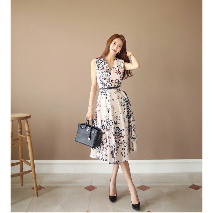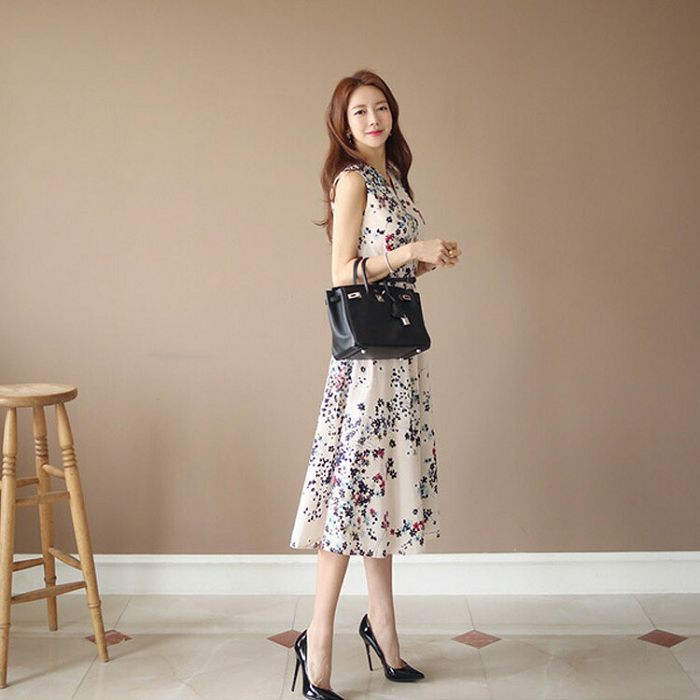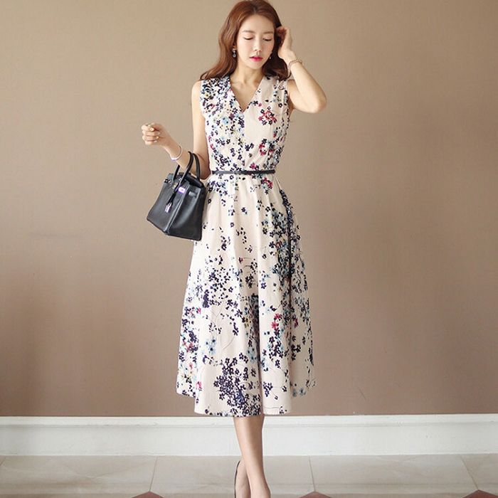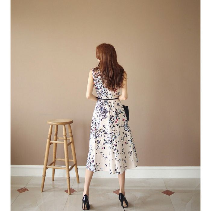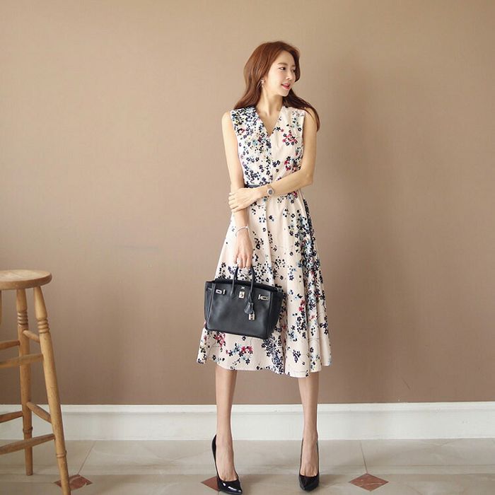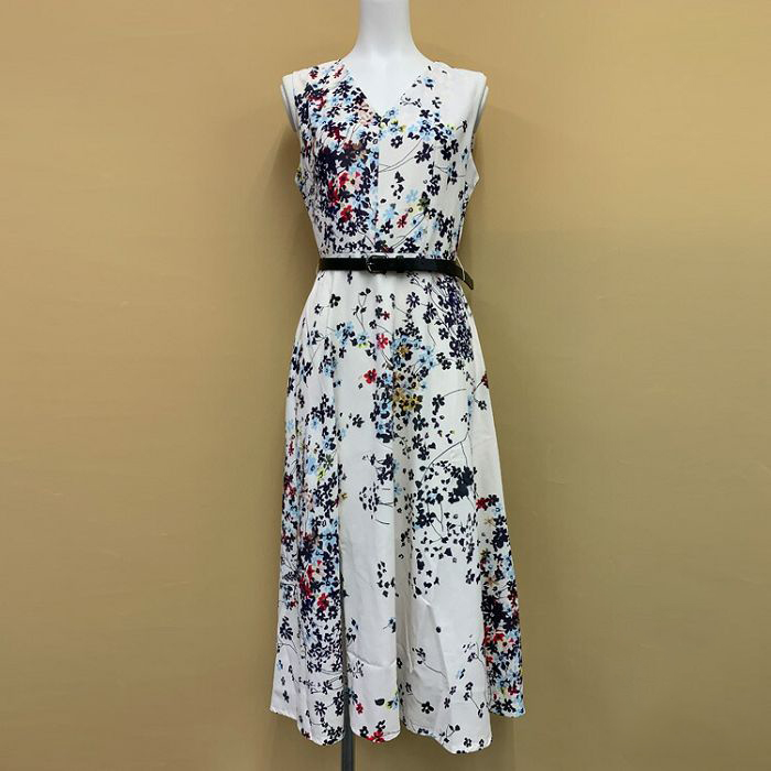 ワンピース 花柄 ノースリーブ 白ワンピ 大人可愛い オフィスカジュアル 夏ワンピ ワンピース リゾートワンピ 春 夏 お花見 きれいめワンピ 40代 50代 フレアワンピ Aライン ロングワンピ 膝下 Aライン オケージョン