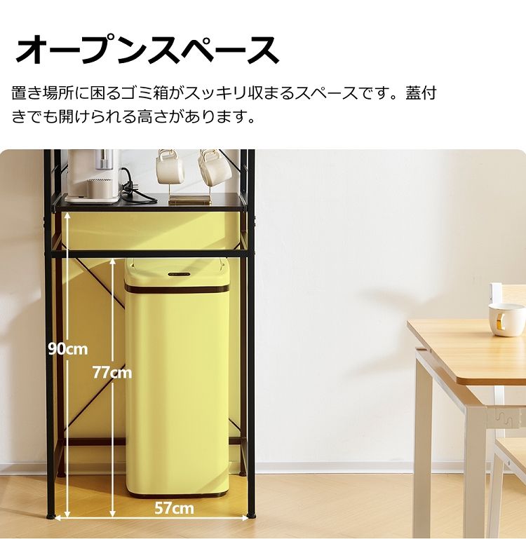【オープンスペース】置き場所に困るゴミ箱がスッキリ収まるスペースです。蓋付きでも開けられる高さがあります。