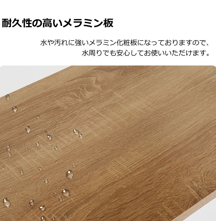 【水や汚れに強いメラミン化粧板&粉体塗装】汚れにくく、水に濡れてもサッと拭き取ることができ、キッチン周りで快適にお使いいただける仕様となっております。