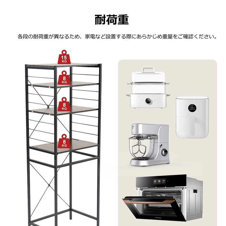 【天板の耐荷重】各段の耐荷重が異なるため、家電など設置する際にあらかじめ重量をご確認ください。