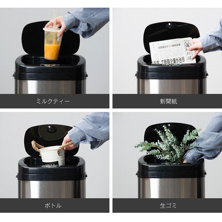 センサー全自動開閉式 ゴミ箱 大容量 45L ブラック Black Stainless Steel