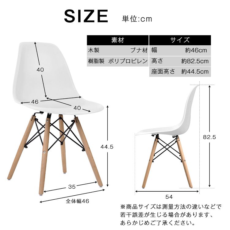 【商品仕様】商品サイズ:幅46×奥行40×高さ82.5cm(座面高:44.5cm)重量:5kg 静止耐荷重:約100KG素材:張り地:プロ仕様 高級PP樹脂素材 脚部:天然木座面カラー: ホワイト/ブラック/レッド/グレーン/オレンジ/ブルー/イエロー/ピンク/マスタードイエロー/ブラウン/シルバー(グレー)/ネービーブルー/ライトグリーン/アボカドグリーン/ミルクティー脚カラー:ナチュラル/ブラウン/ダークブラウン生産国:中国組立品/完成品: 組立品