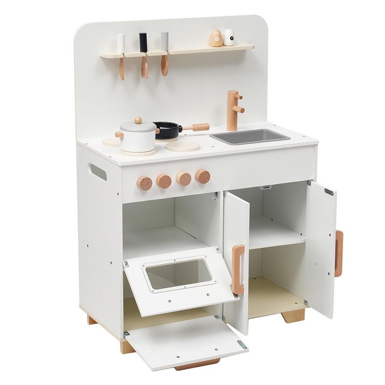 おままごと キッチン 木製 付属品付き ままごとセット 誕生日 台所 知育玩具 子供用 子供 収納 まねっこ コンロミニキッチン おもちゃキッチン キッズ ベビー プレゼント White MDF