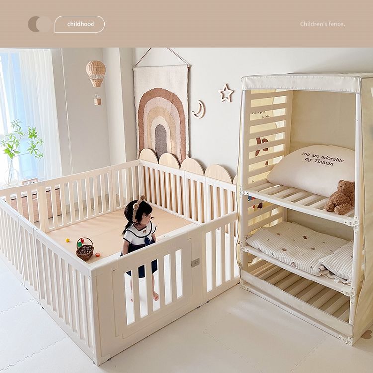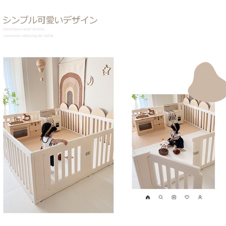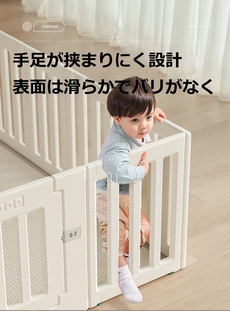 ベビーサークル 内径150*180cm 変形可能 収納棚へ変身可能 扉付き ベビーゲート ベビーフェンス プレイヤード 簡単組立 柵 キッズ Beige HDPE