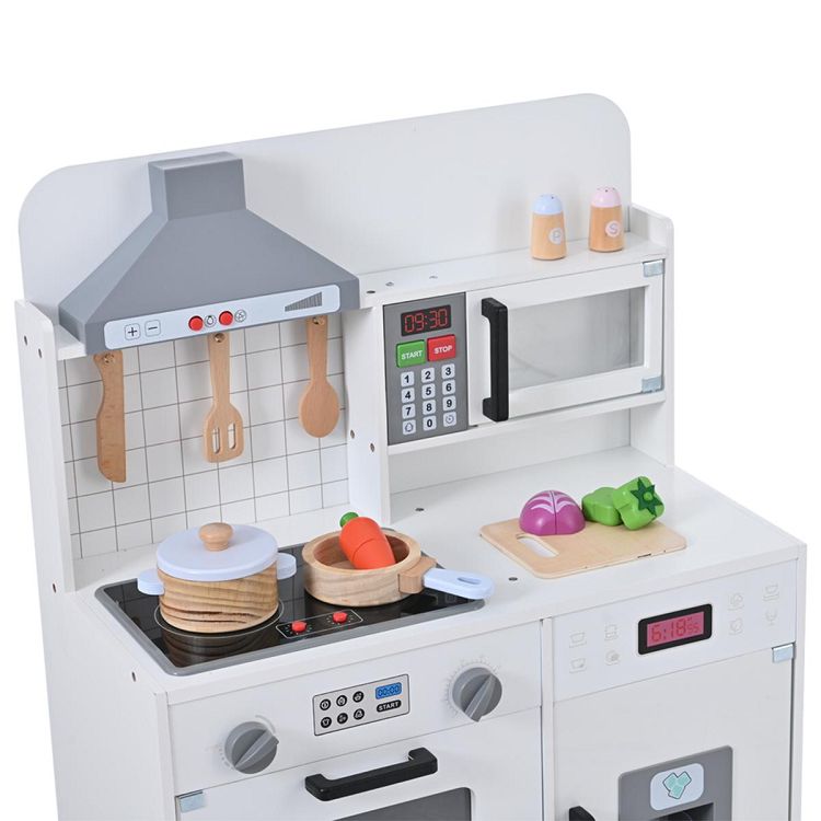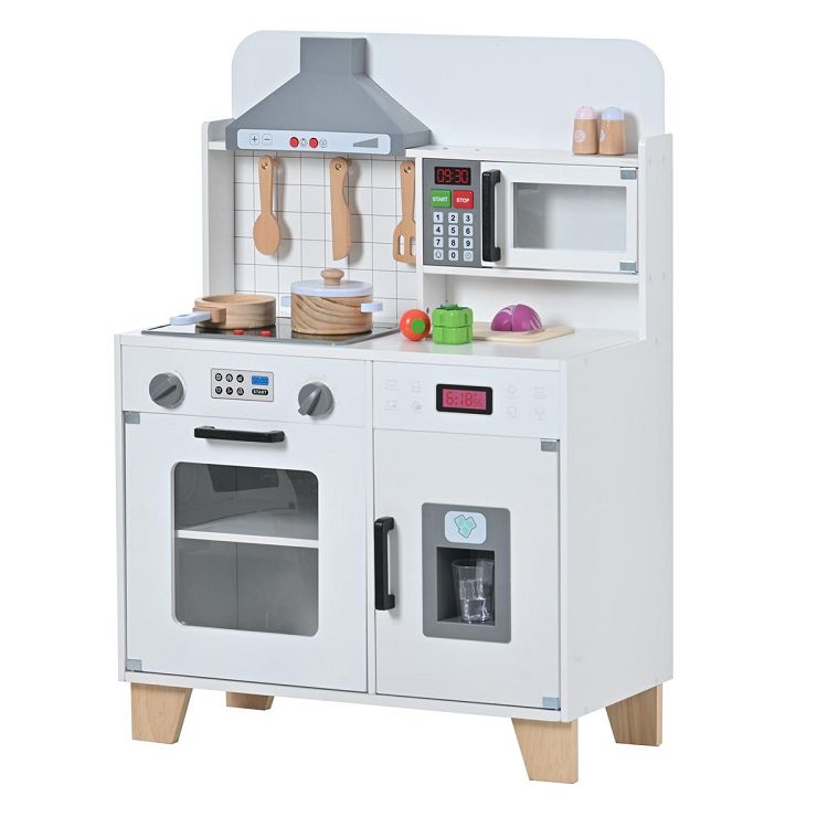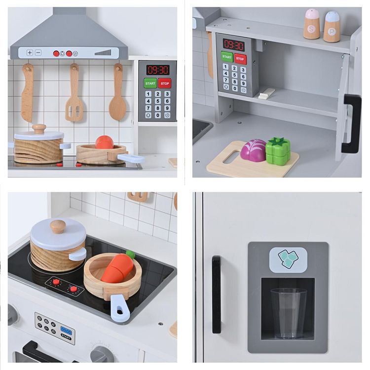 おままごと キッチン 木製 台所 ライト付き 音が鳴る 製氷機 調理器具付き 調味料 食材 野菜 知育玩具 コンロ 電子レンジ キッチン 家事 おもちゃ キッズ ベビー 誕生日 プレゼント 子供 ままごと キッチン 新作