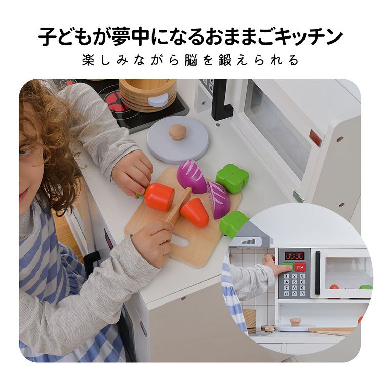 ◆06オーブンみたいな小窓付扉 小窓がついた開き扉の中は2段に分かれており、オーブンのように使ったりすることができます。棚下には収納スペースあり、おままごと器具やおもちゃンなどをいっぱいしまえます。遊びながら整理整頓の習慣を身に着けられますよ。