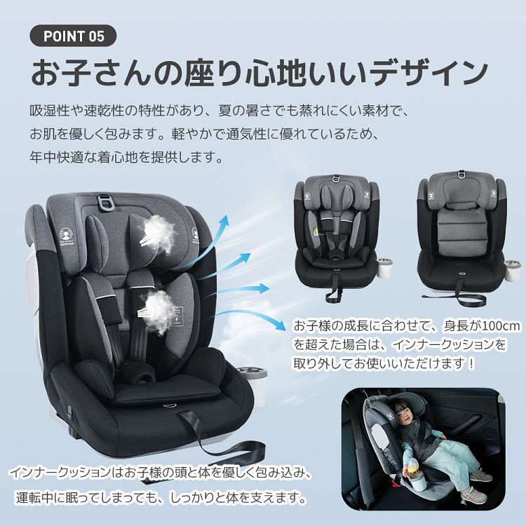 新安全基準R129適合 チャイルドシート ISOFIX 生後15ヶ月~12歳頃 76~150cm ジュニアシート 長く使える 洗える 取付簡単 キッズシート ベビーシート ドリンクホルダー付き 出産祝い