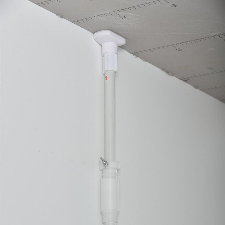 1.エクステンションポール(上)を伸ばして、天井に突っ張りをします。