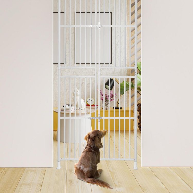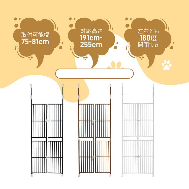 ペット高さ調節対応 191~255cm ドア ケージ 留守番 保護 ネコ 脱走防止 柵 フェンス 脱走防止 猫用 多頭飼い 多頭 スチール ペットケージ 新生活 White Steel