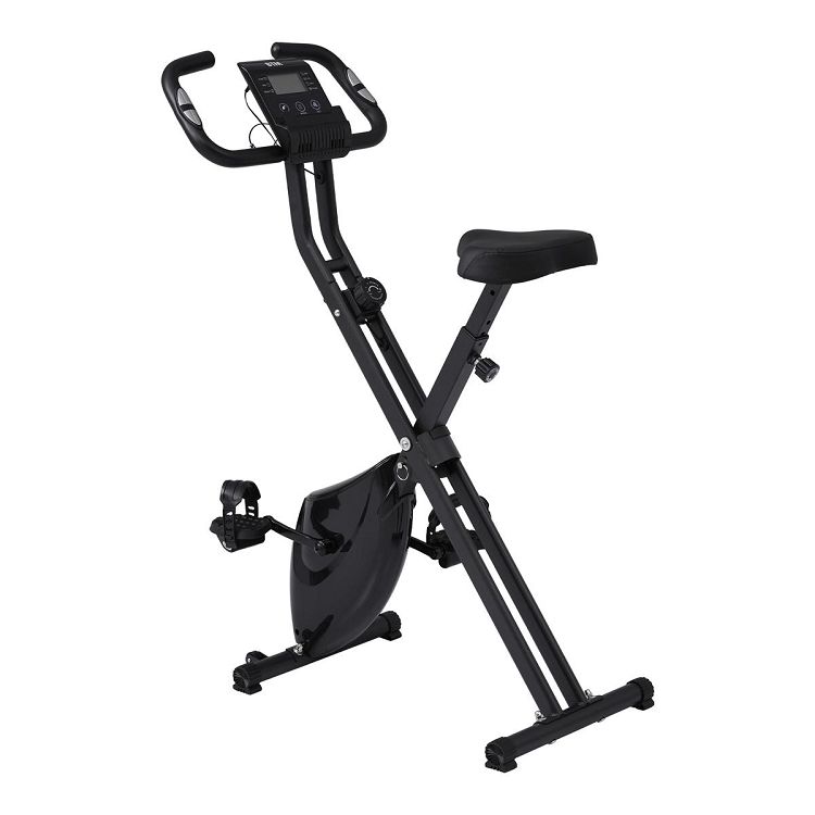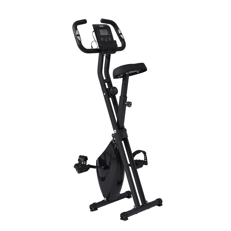 【省スペースで収納可能】使わない時はピンを抜き差しするだけで、折りたためて収納する事ができますよ。省スペースで収納可能なX型フィットネスバイク!!女性やご高齢の方でもラクラク持ち運びが可能!!