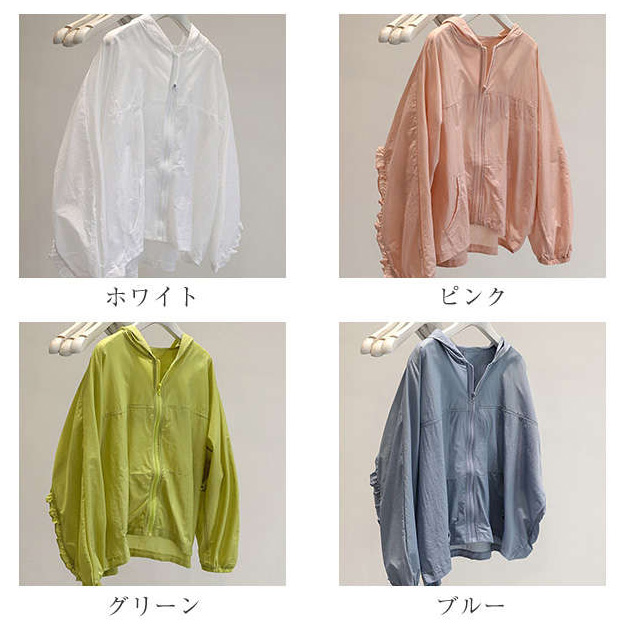 レディース UVパーカー UVカット パーカー パーカー 春 夏 接触冷感 薄手 透け感 袖ボリューム ジップアップ ジャケット uvカット 撥水 速乾 通気 長袖 軽量 羽織 日常 通勤 通学 学生 アウトドア リゾート