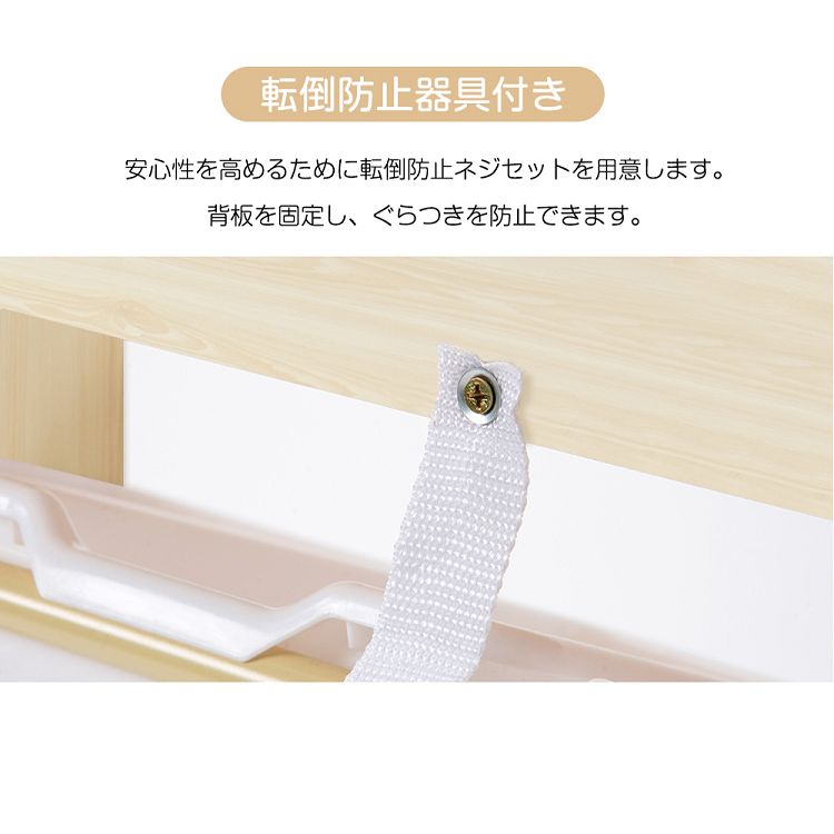 POINT 6 【細かいこだわり】 1.ネジ隠しシール 2.足裏フェルト付き 足裏にはフェルトクッションを付けます。床のキズを軽減でき、 安定性を増えます。 3.頑丈なBOX BOXは高品質なプラスチックを使うため、乱暴に扱っても割れにくいです。 4.背面も美しい化粧仕上げ 5.水洗えるBOX