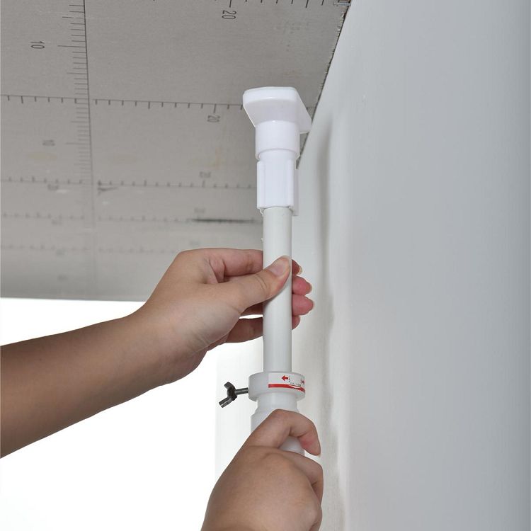 1.エクステンションポール(上)を伸ばして、天井に突っ張りをします。