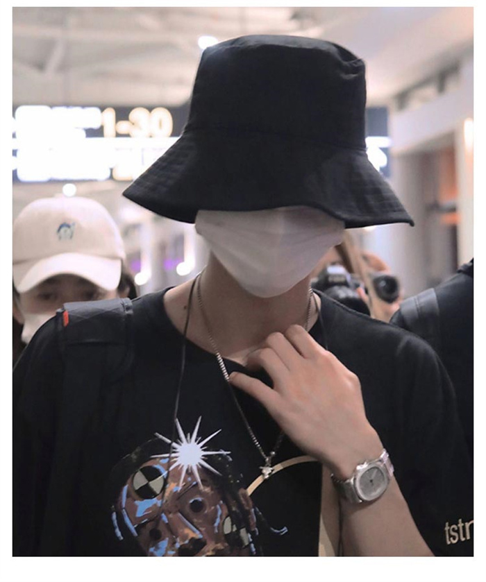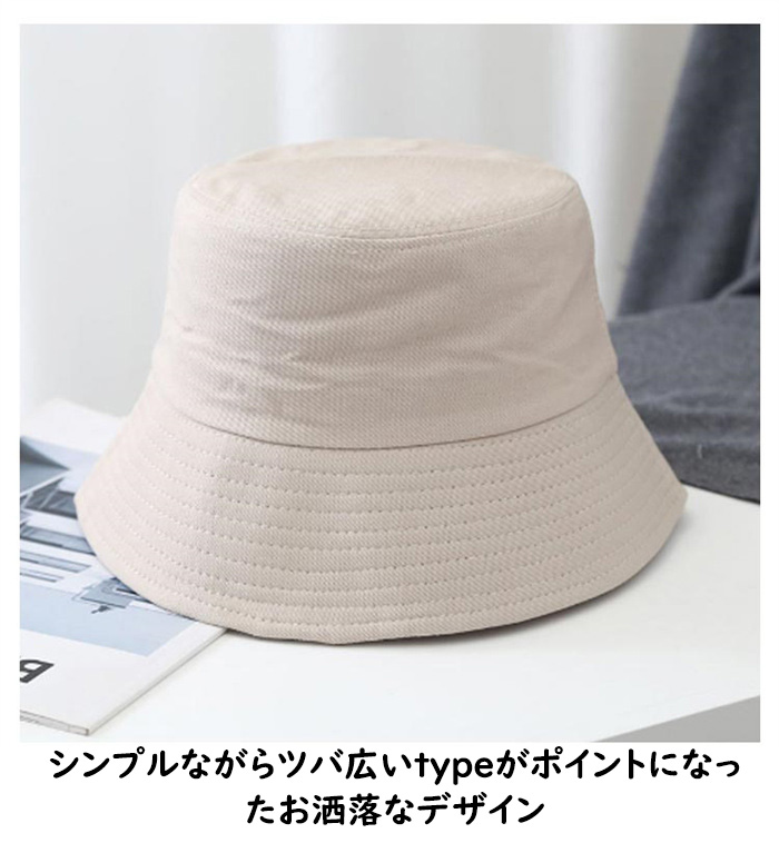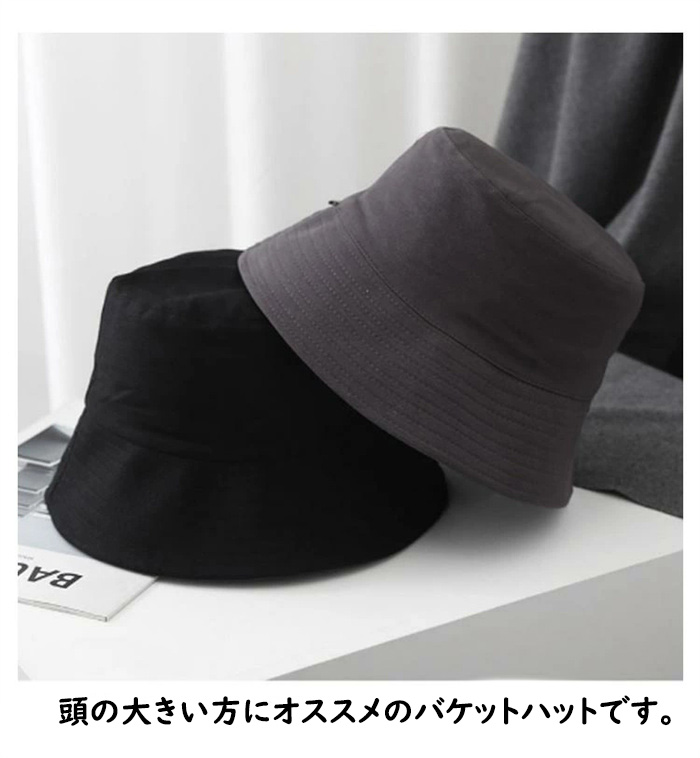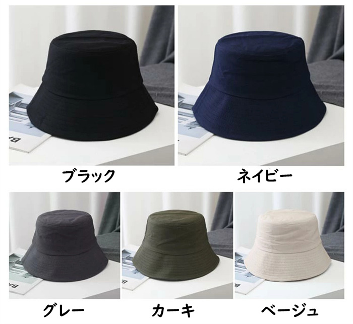 シンプル無地タイプのメンズ用つば広バケットハットです。