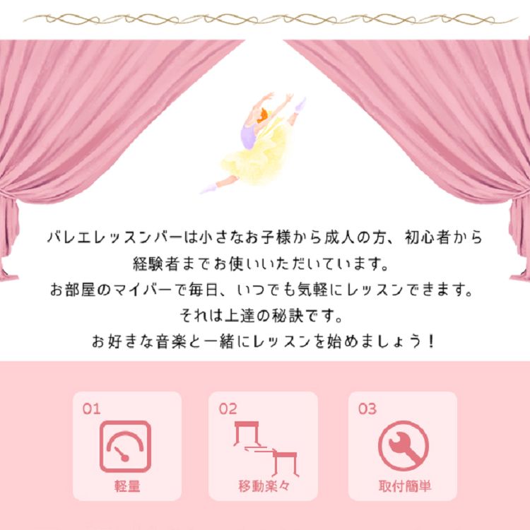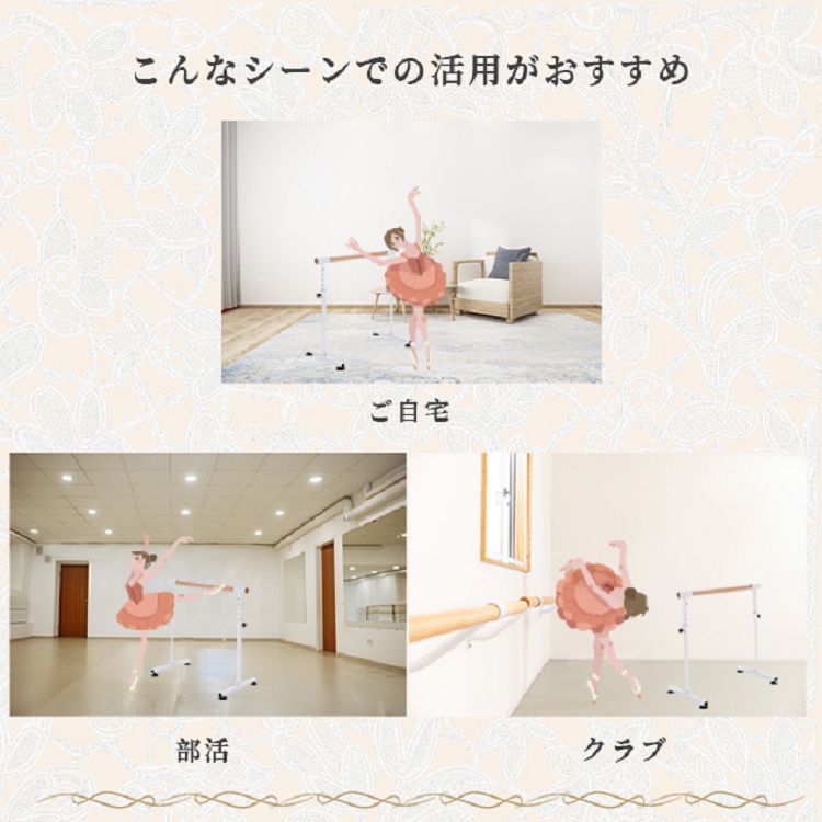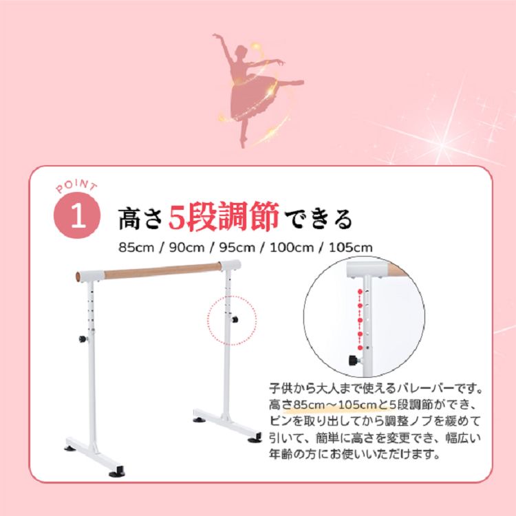 バレーバー バレエバー スタンド バレエ バー レッスンバー 高さ 5段階 85cm 90cm 95cm 100cm 105cm 調整 天然木 Natural Wood + Stainless Steel