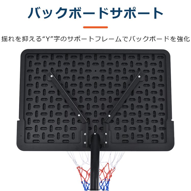 【バックボードサポート】揺れを抑える“Y”字のサポートフレームでバックボードを強化します。
