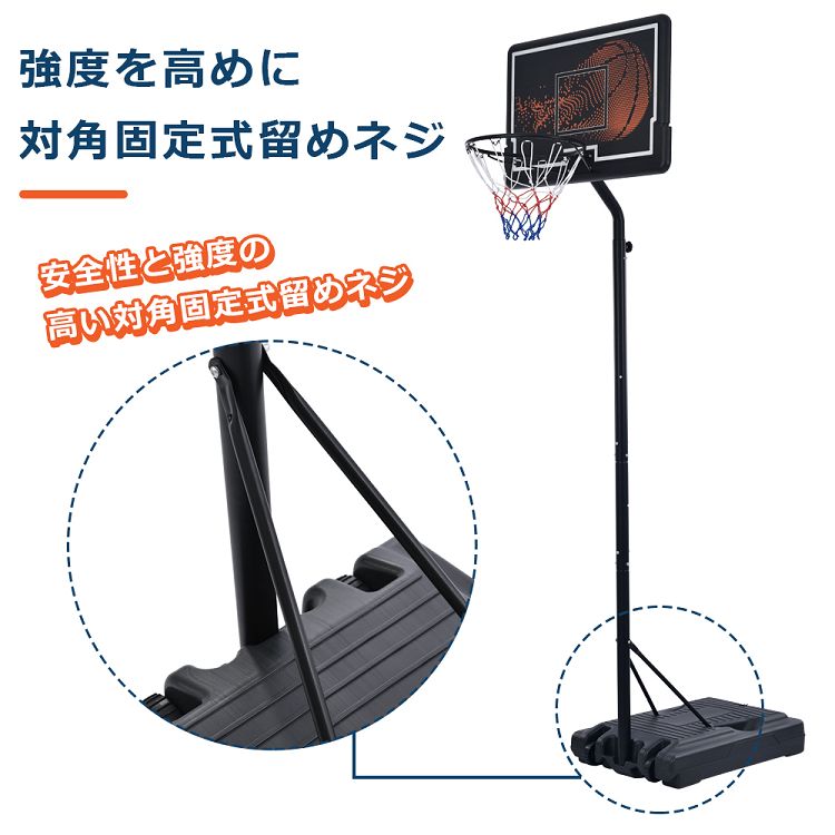 バスケットゴール 公式&ミニバス対応 6段階高さ調節 210-305cm 移動可 工具付き ゴールネット バックボード リング ミニバス 一般用 屋外用 Black HDPE