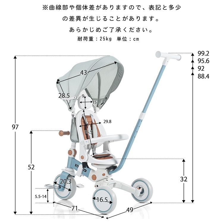 POINT 4.【細部にもこだわり】 6段階調整可能なハンドル 折りたため・取り外し可能なサンシェード 安全性と実用性が両立する後輪部分の設計 発泡EVA、空気入れ必要なし 【ご注意】 ※製造上、画像のような白くなる場合又は波形のような模様が入ります。不良ではないので、返品・交換は出来かねます。ご了承とご理解の上ご購入くださいませ。 サイズ:※曲線部や個体差がありますので、表記と多少の差異が生じることがあります。あらかじめご了承ください。