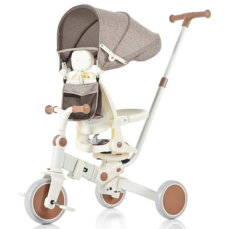 子供用三輪車 折りたたみ 手押し かじとり おしゃれ 7in1 BTM 1歳 2歳 3歳 ランニングバイク 座面回転 自転車 おもちゃ 乗用玩具 幼児用 キッズバイク 誕生日プレゼント おもちゃ お祝い ギフト Beige Iron+Plastic