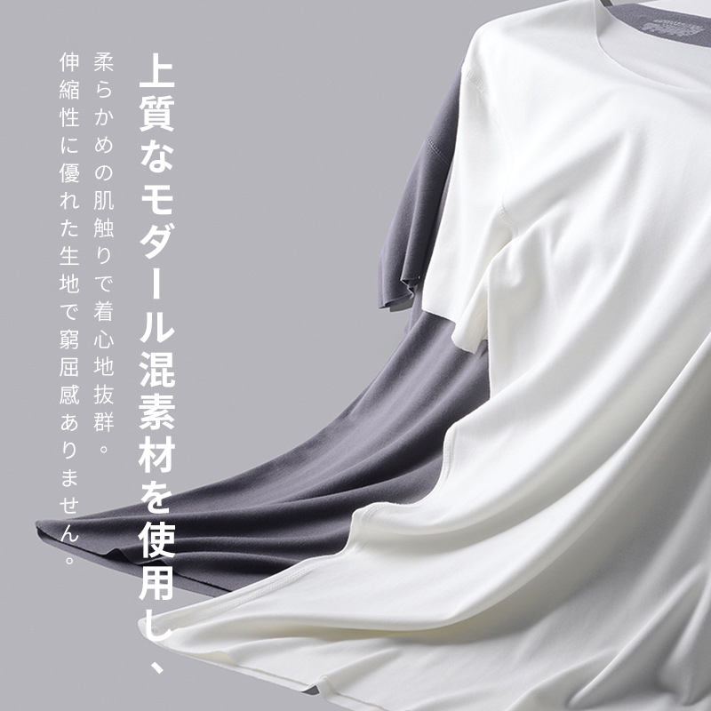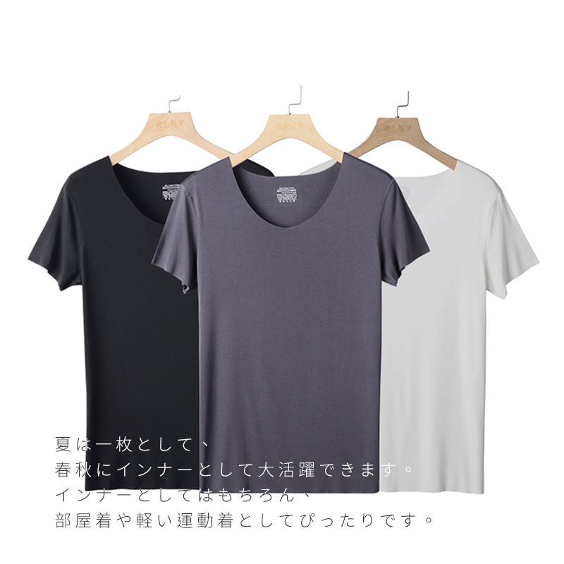 メンズ 涼感 薄手 半袖Tシャツ 夏服 モダール インナーシャツ クルーネック 夏 半袖 柔らかい 肌触り ホワイト ブラック 肌着 スポーツ ビジネス 綿100%