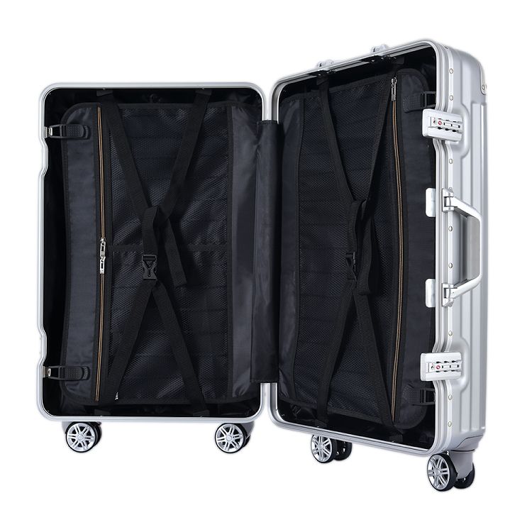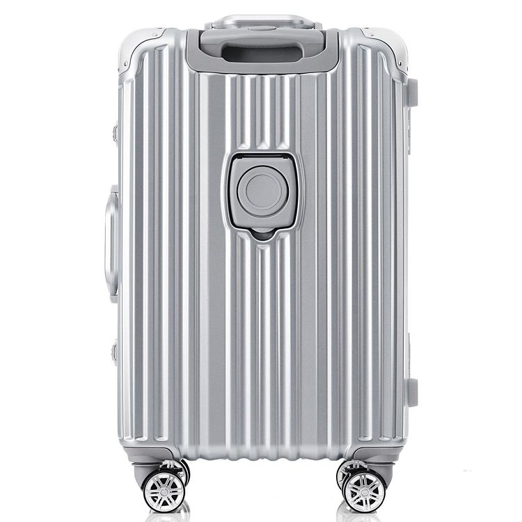 スーツケース Lサイズ アルミ ストッパー付き USBポート カップホルダー キャリーケース キャリーバッグ アルミフレーム 7日~14日 大容量 超軽量 軽い おしゃれ かわいいダブルキャスター 大型 suitcase China Silver