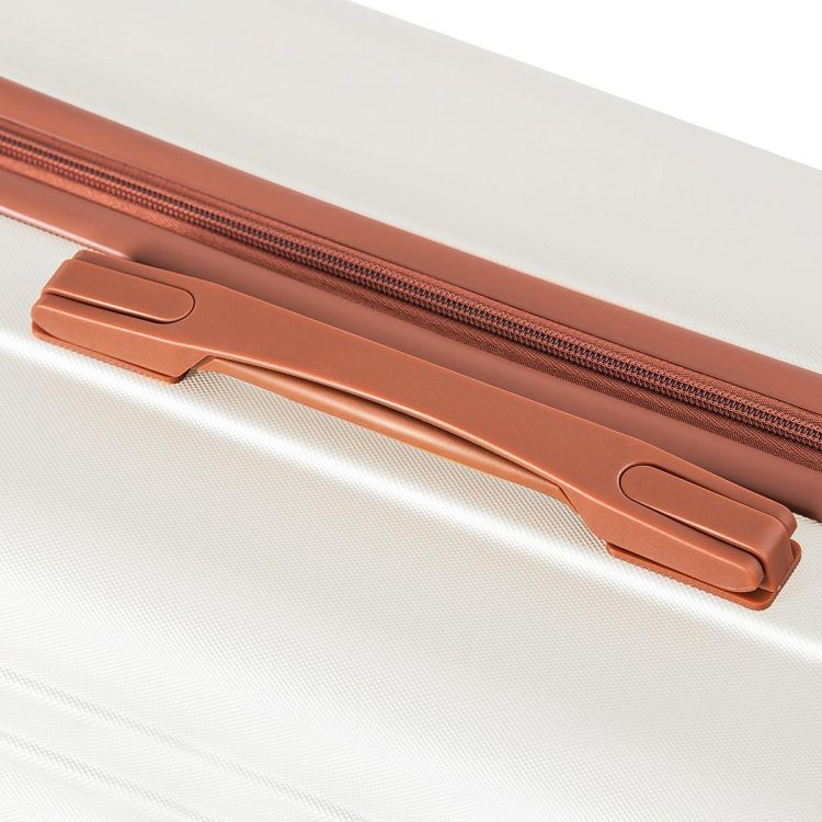 7.【角を保護するコーナープロテクター】空港で預けた荷物は、他の荷物とぶつかったりして、どうしてもコーナー部分に衝撃が加わります。そんなことがないように、コーナー部分を擦れや衝撃に強い素材で作ったパットでガードしました。また、コーナープロテクターはボディとフットしていなければ、正しく性能が発揮されません。それを設計段階から緻密に計算し、デザイン性と実用性を兼ね備えた美しく強いボディとなっています。