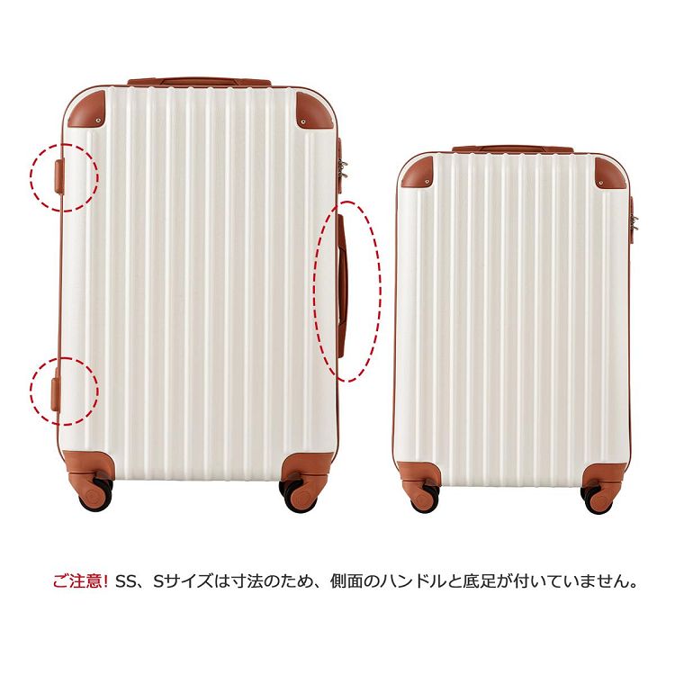 10.【ご注意】①内部ファスナーについて:ケース内部にあるファスナーはメンテナンス専用ファスナーとなります。修理が必要になった場合にのみ使用するファスナーのため、あえてファスナーのつまみが付いていません。お荷物を入れるものではありませんので、ご注意ください。②SSとSサイズは寸法のため、側面のハンドルと底足が付いておりません。予めご了承ください。③※掲数している写真は、ご使用のコンピューター及びスマホのモニターの種類によって、実際の商品のイメージと多少異なることがございます。予めこ了承ください。※ロットによって、製品の色は多少異なりますので、こ了承とこ理解の程よるしくお願いたします。