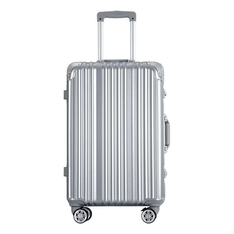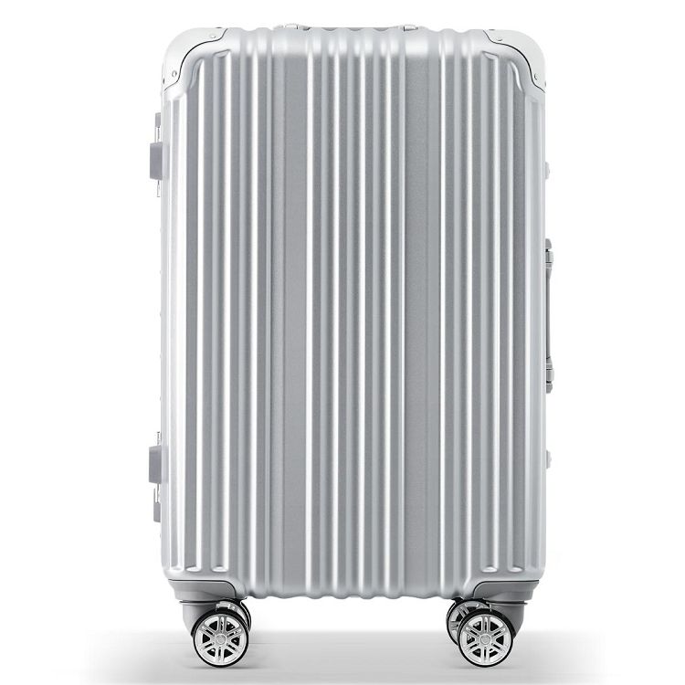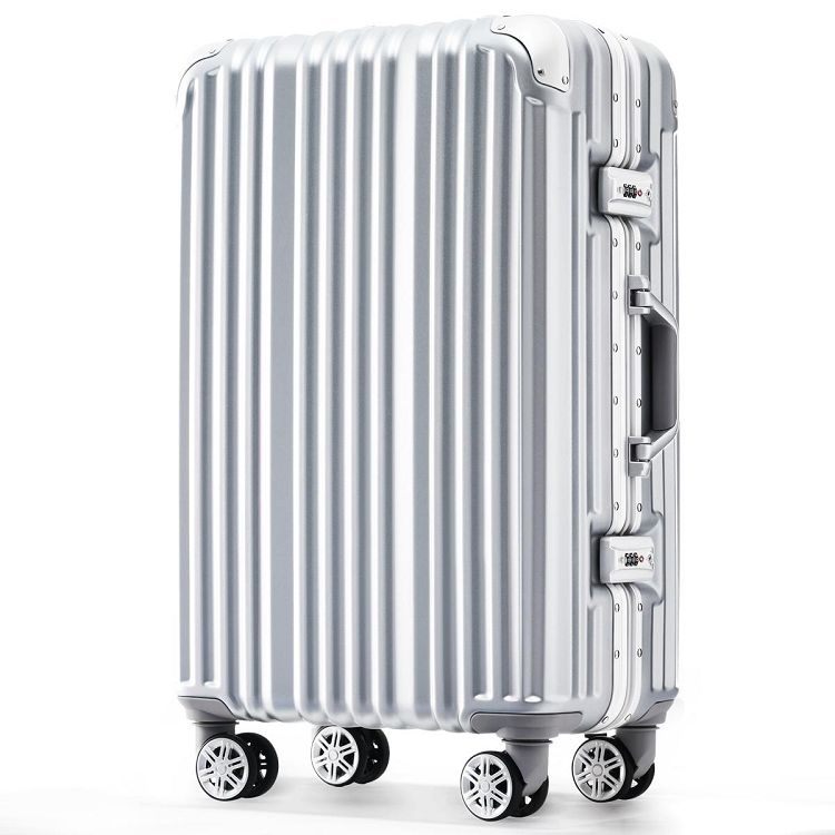 スーツケース Mサイズ アルミ ストッパー付き USBポート カップホルダー キャリーケース キャリーバッグ アルミフレーム 3日~7日 大容量 超軽量 軽い おしゃれ かわいいダブルキャスター 中型 suitcase China Silver