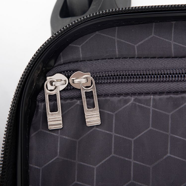 POINT 8.【簡潔便利な内装】荷物をしっかり固定するクロスベルトと簡単に操作できるファスナーがあります。 内部ファスナーについて:ケース内部にあるファスナーはメンテナンス専用ファスナーとなります。修理が必要になった場合のみ使用するファスナーのため、あえてファスナーのつまみが ついていません。お荷物を入れるものではないので、ご了承ください。