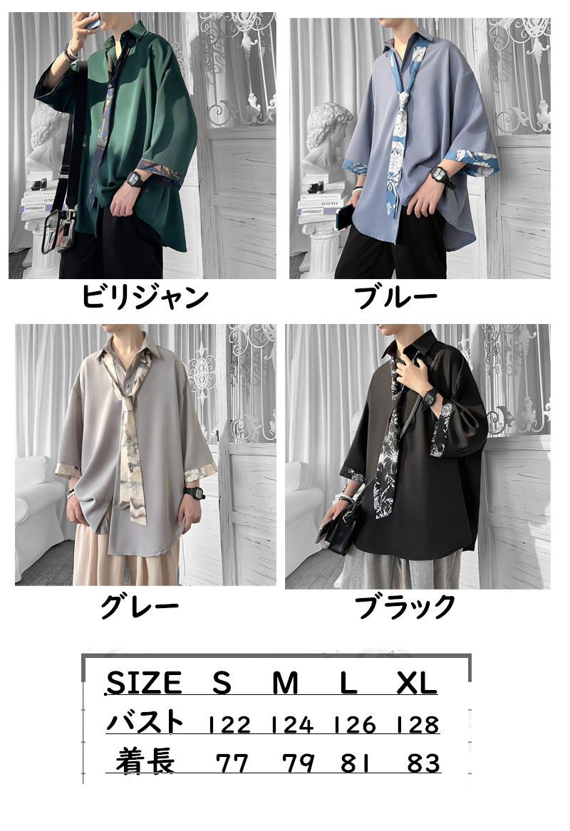 七分袖シャツ ネクタイ付き メンズ カジュアルシャツ オーバーサイズ 大きいサイズ ゆったり 涼しい 夏服 おしゃれ レディース シャツ