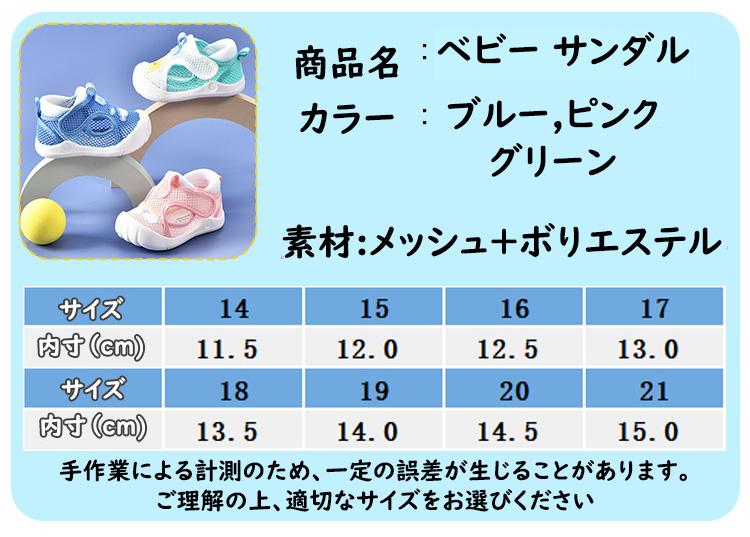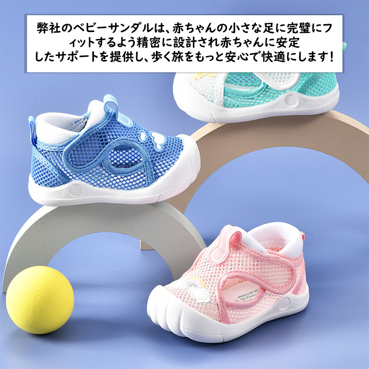 子供靴 ベビー靴 ベビーシューズ ベビーサンダル ファーストシューズ カジュアル シューズ 可愛い 歩行練習 出産祝い 幼児 サンダル つま先ガード 11.5cm 12cm 12.5cm 13cm 13.5cm 14cm 14.5cm 15cm メッシュ 軽量 快適 子供サンダル キッズ サンダル ブルー ピンク グリーン