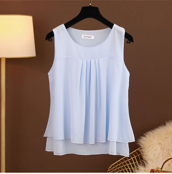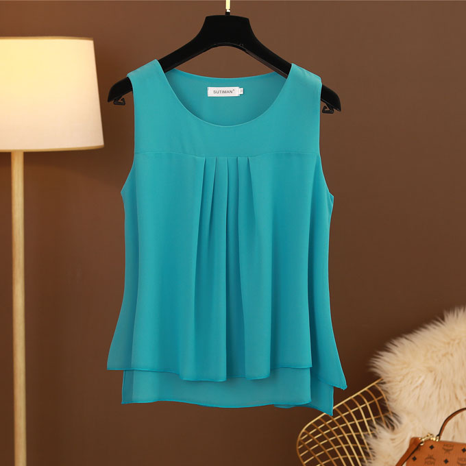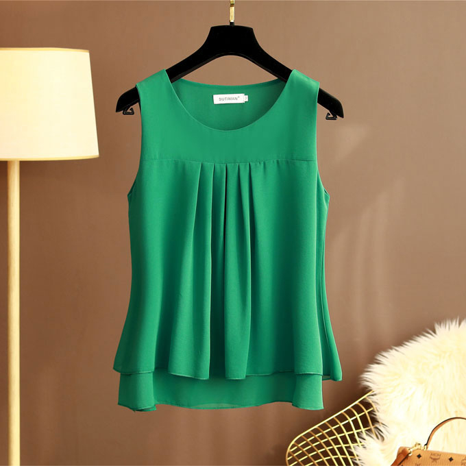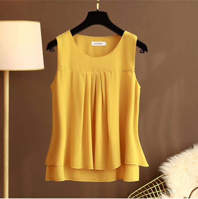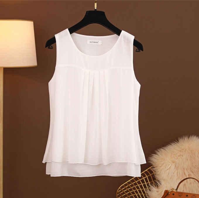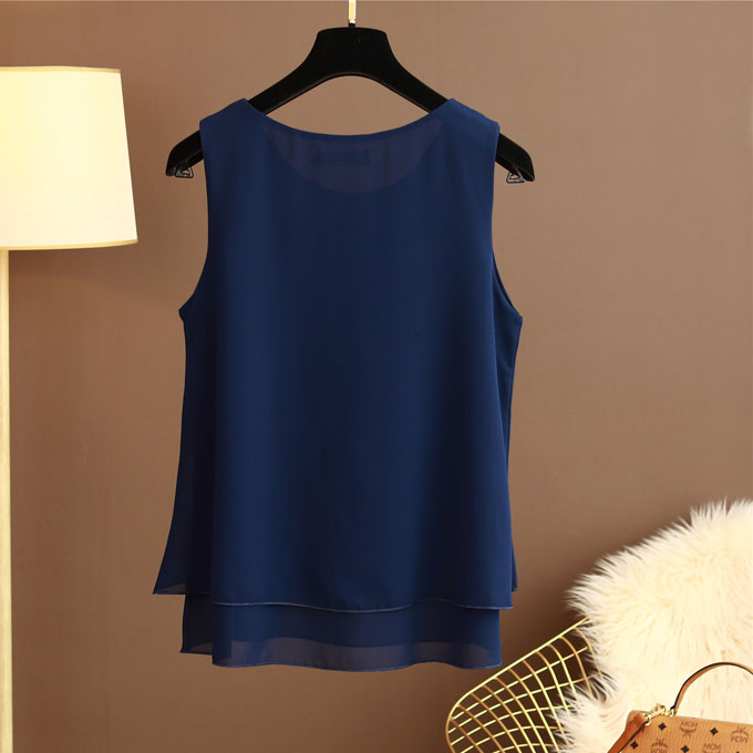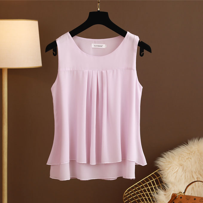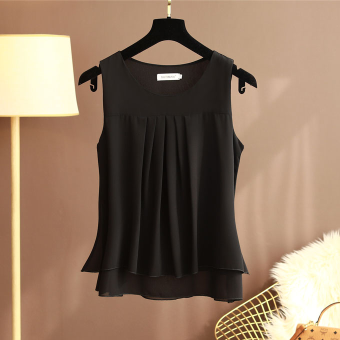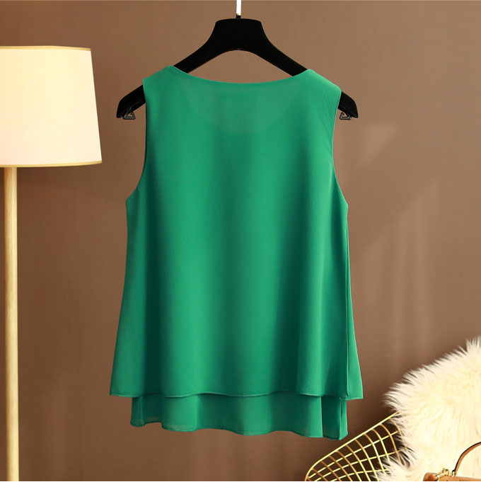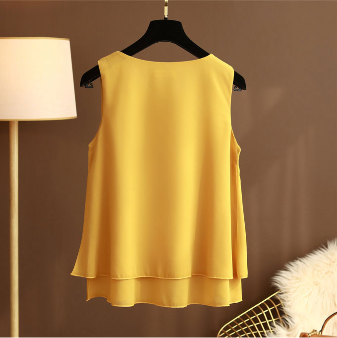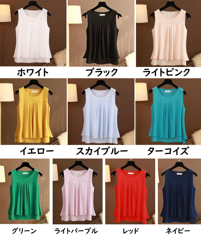 レディース トップス ノースリーブ ブラウス インナー Vネック シフォン タンクトップ プルオーバー 無地 ラウンドネック 多色 レイヤード風 重ね着 インナー 無地 ゆったり カジュアル かわいい 春夏 送料無料