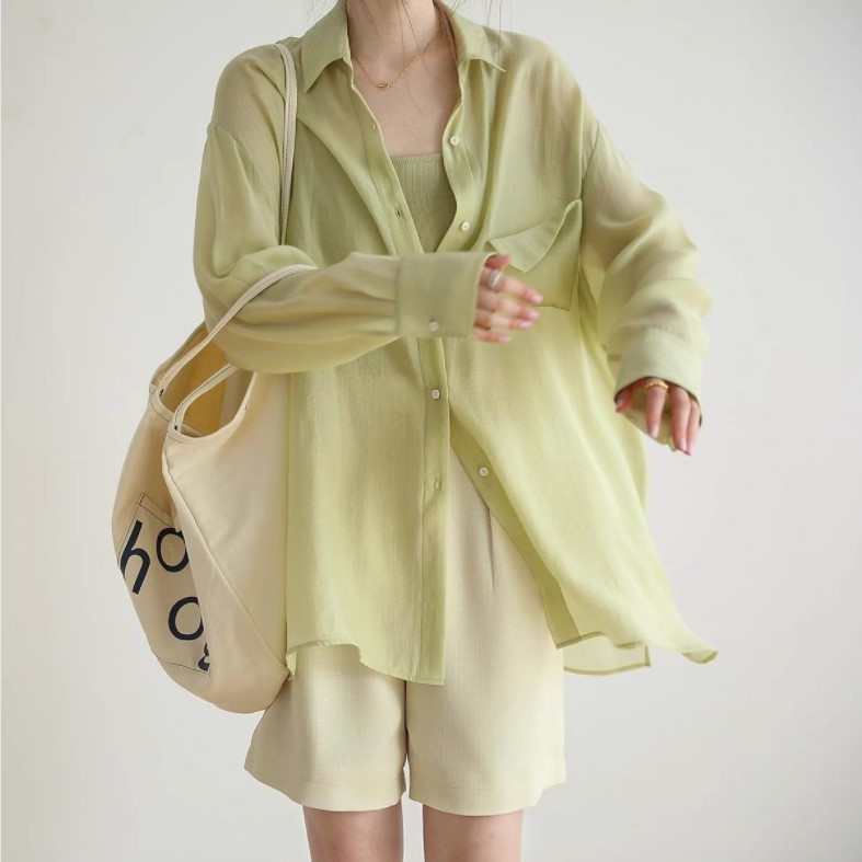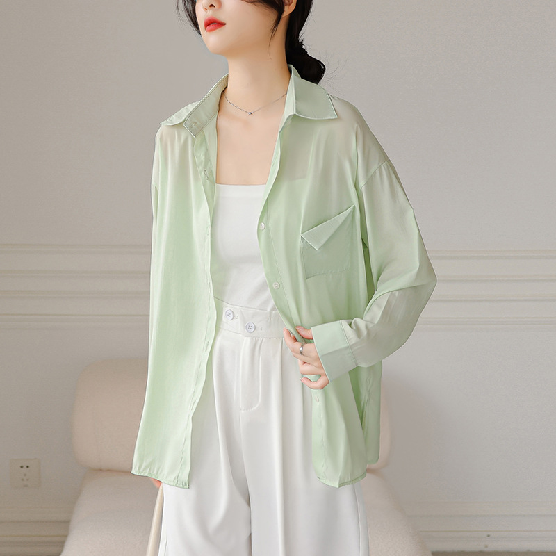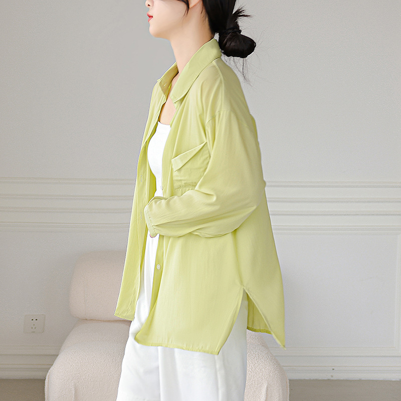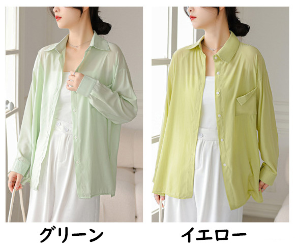 ブラウス シャツ シアー シースルー 透け感 レディース 長袖 トップス uvカーディガン 無地 日焼け止め UVカット ゆったり 体型カバー オフィス 可愛い
