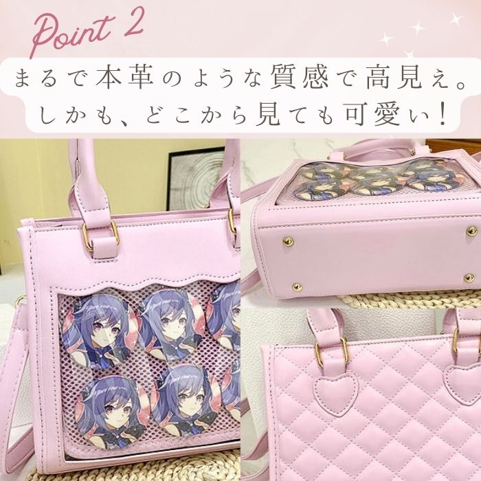 ◎ 小さめの痛バックをお探しの方にピッタリの商品です。レザー調の素材を使っており、可愛さに上品さをプラス☆