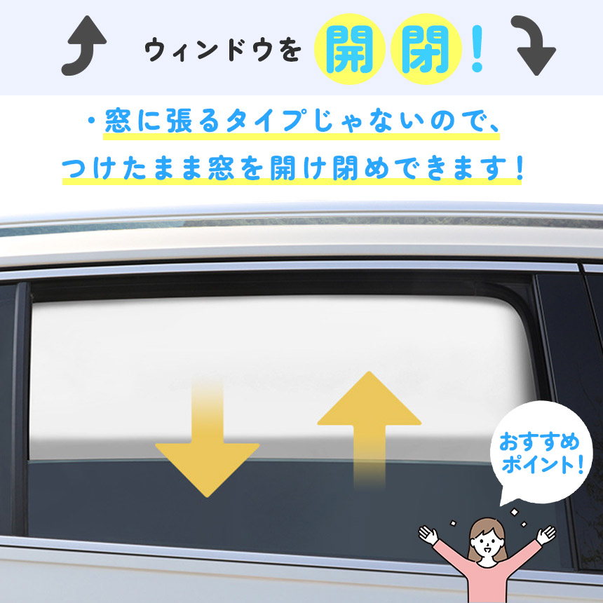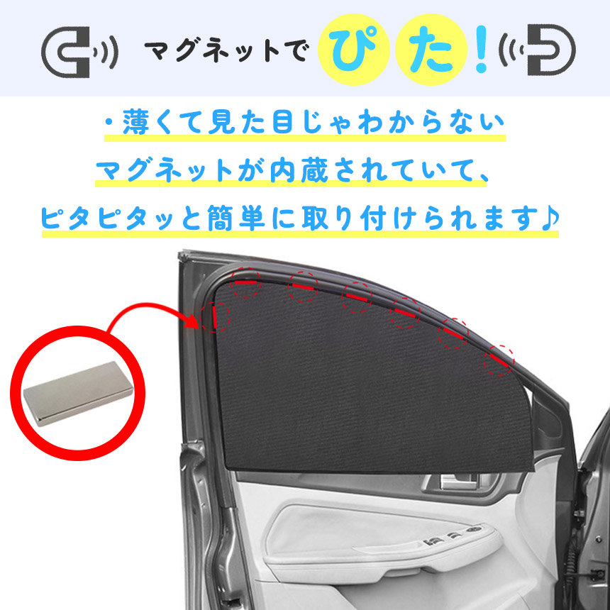 カーウィンドウ上部に本製品のマグネット部分を張り付けるだけ♪マグネットは等間隔に製品上部に見えないように縫い込まれています。