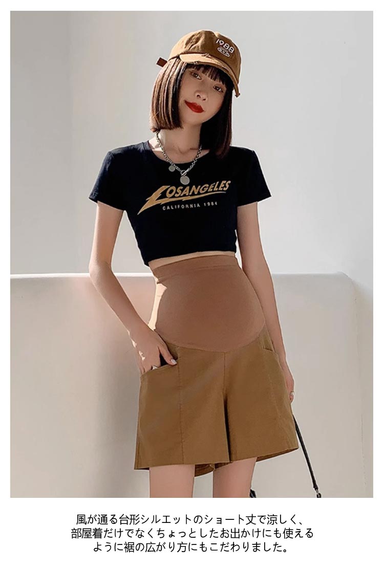 妊婦 夏 パンツ サマー きれいめ ワイドパンツ マタニティ パンツ ショートパンツ 涼感 ショーパン 涼しい ハイウェスト ポケットあり Aライン 産前 産後 妊婦服