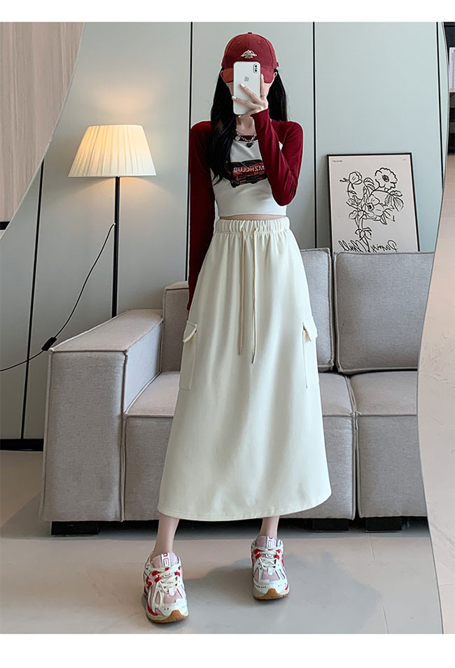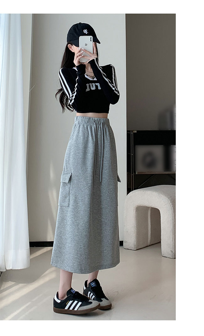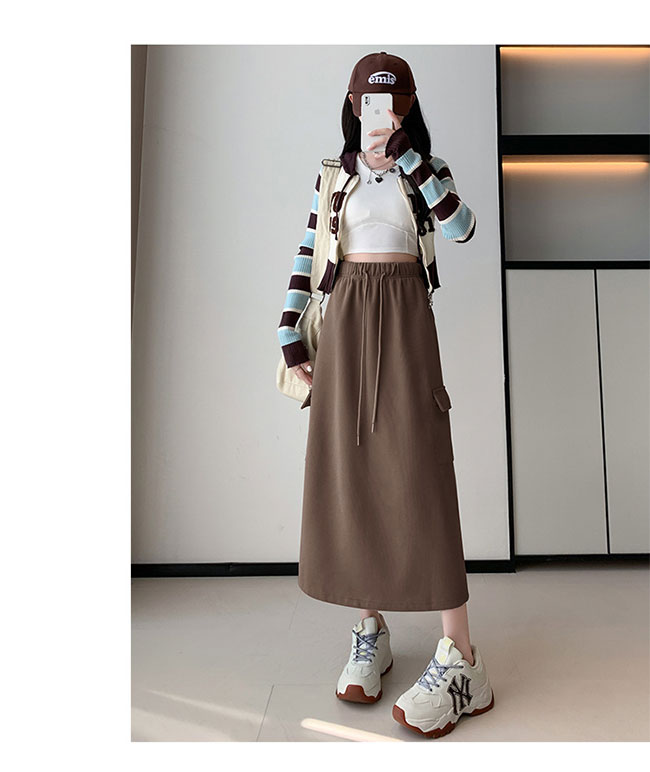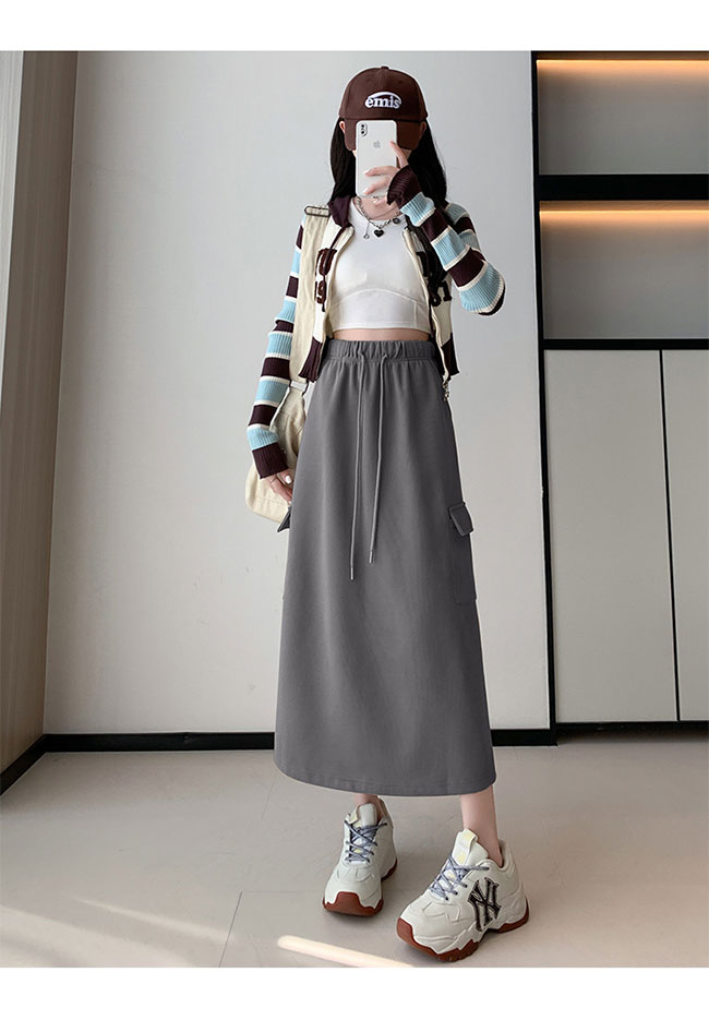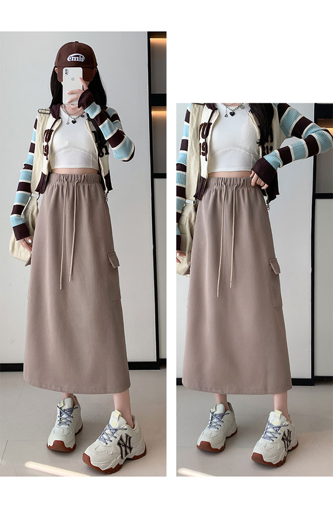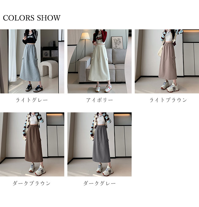 スカート レディース スウェットスカート ロングスカート 膝下 ストレッチ 無地 ウエストゴム ポケット付き ロング ハイウエスト ゆったり 大きいサイズ 体型カバー 柔らか 脚長効果