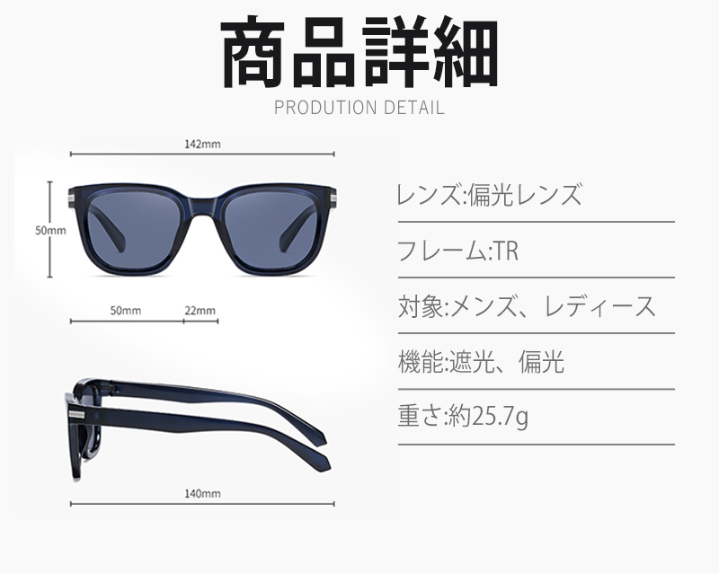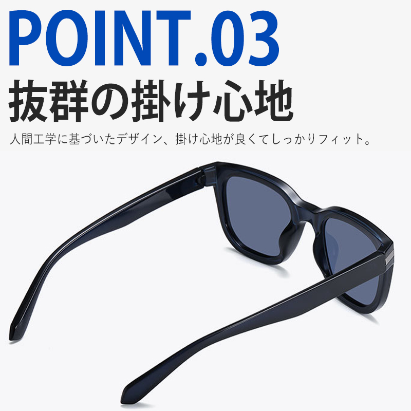夏はもちろん、オールシーズン着用出来るサングラスとなっており、偏光レンズを採用し、バイク、ドライブ、サイクリング、釣り、登山などのアウトドアスポーツ、フェスやキャンプなどの野外イベント、車や自転車の運転時に紫外線対策としても最適、性別に関わらず掛けられます!