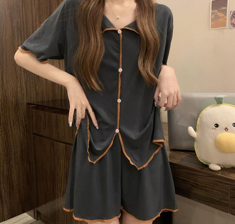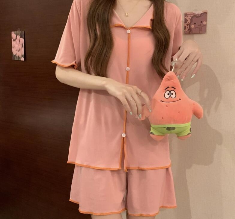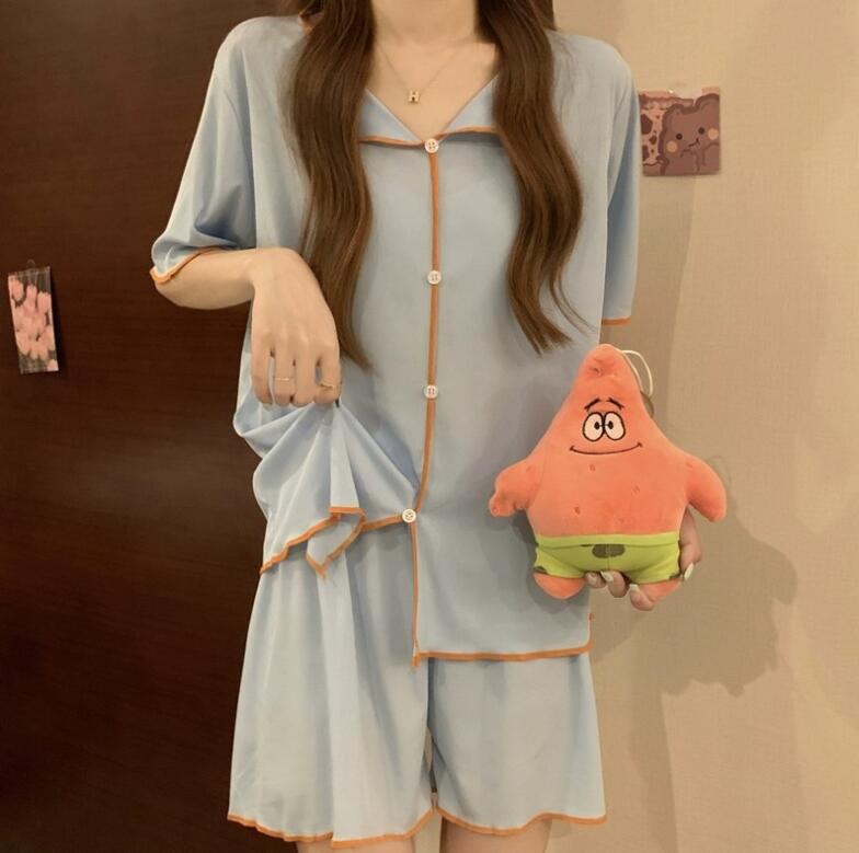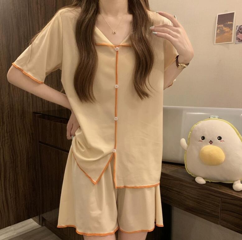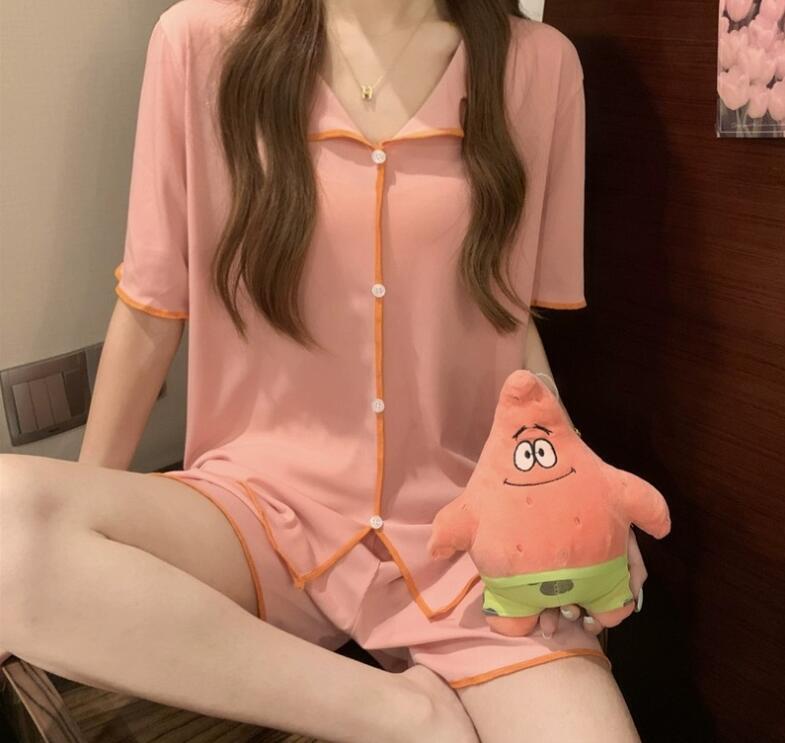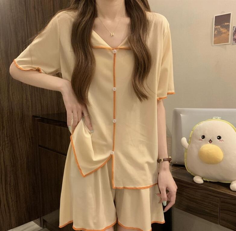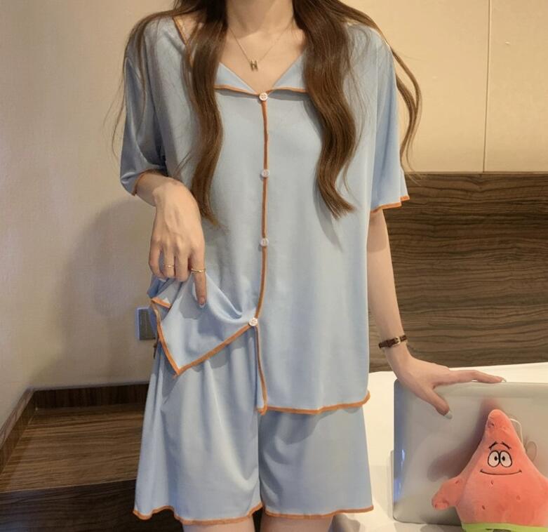 上下セット 部屋着 半袖 夏 かわいい さらてろ 涼感 ルームウェア 楽ちん リブ セットアップ フリル ショーツ ウエストゴム バイカラーメロウフリルさらてろ涼感ルームウェア
