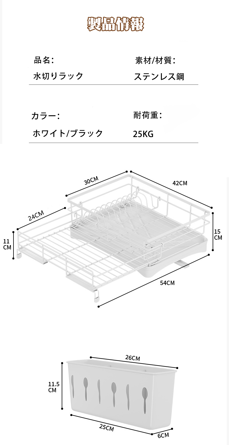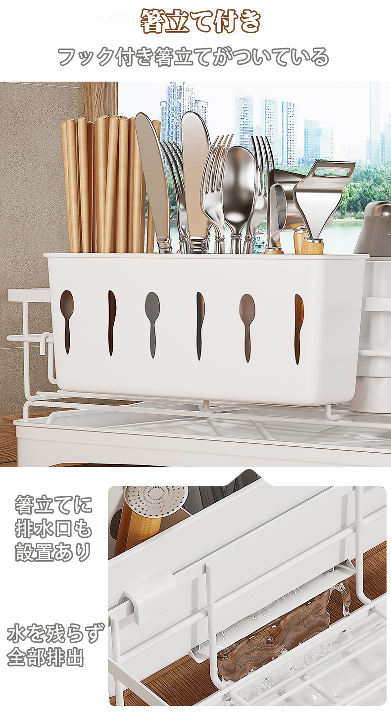 【キッチン用具万能収納】本製品は箸やスプーンなどを整理できる箸立てが付属しています。箸立てのそこも排水口が設置しており、水を残らずに排出できます。