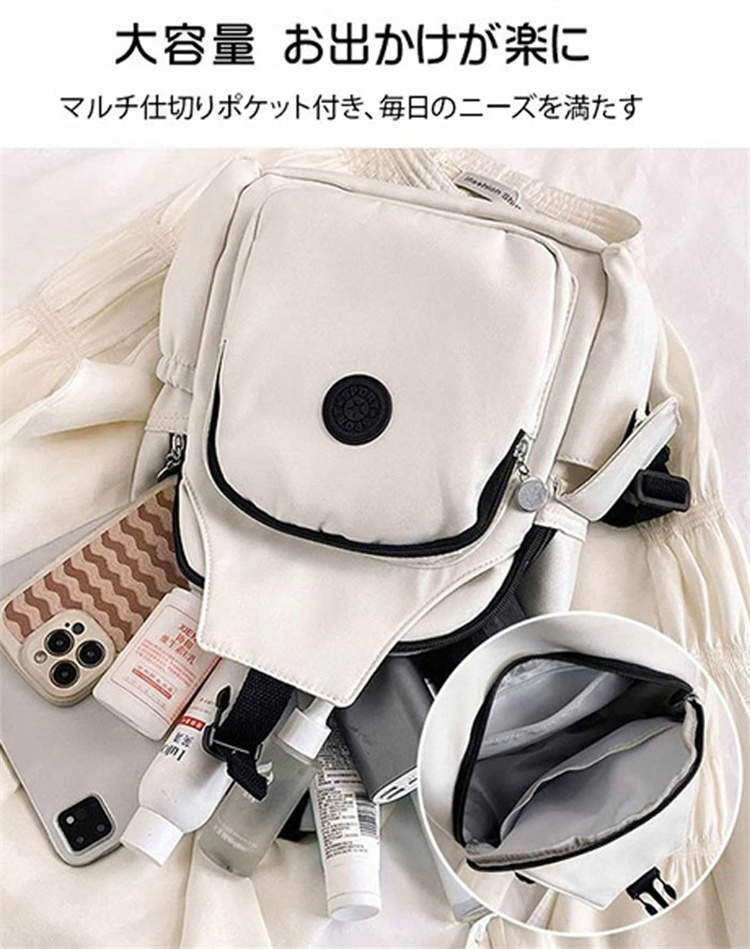 大容量、お出かけが楽に、マルチ仕切りポケット付き、毎日のニーズを満たす。