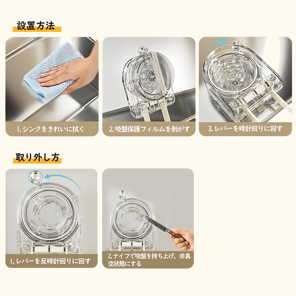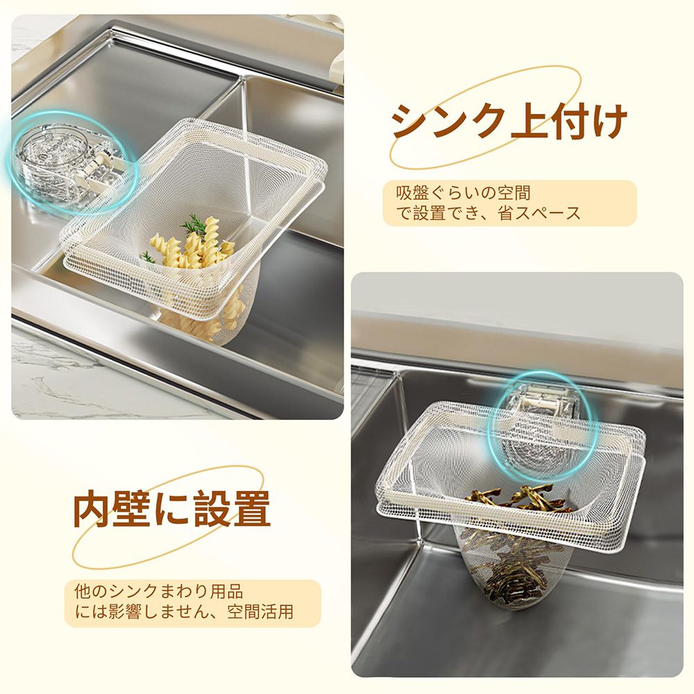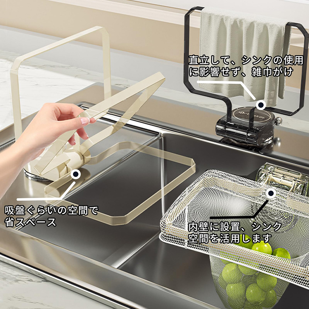 吸盤式 水切りネットホルダー 生ゴミ処理 タオルを掛ける 三角コーナーいらず いらず ホルダー 強力吸盤 本体 耐荷重が強い ゴミ受け 折りたたみ 省スペース シンク 台所 キッチン キッチン用品 おしゃれ